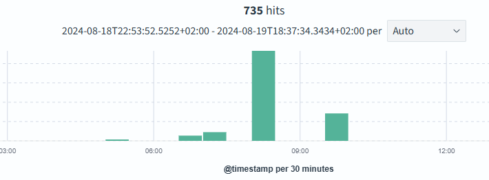 When zooming in the picture (see below), it seems that most attacks are registered between 8 and 10 AM (EEST).